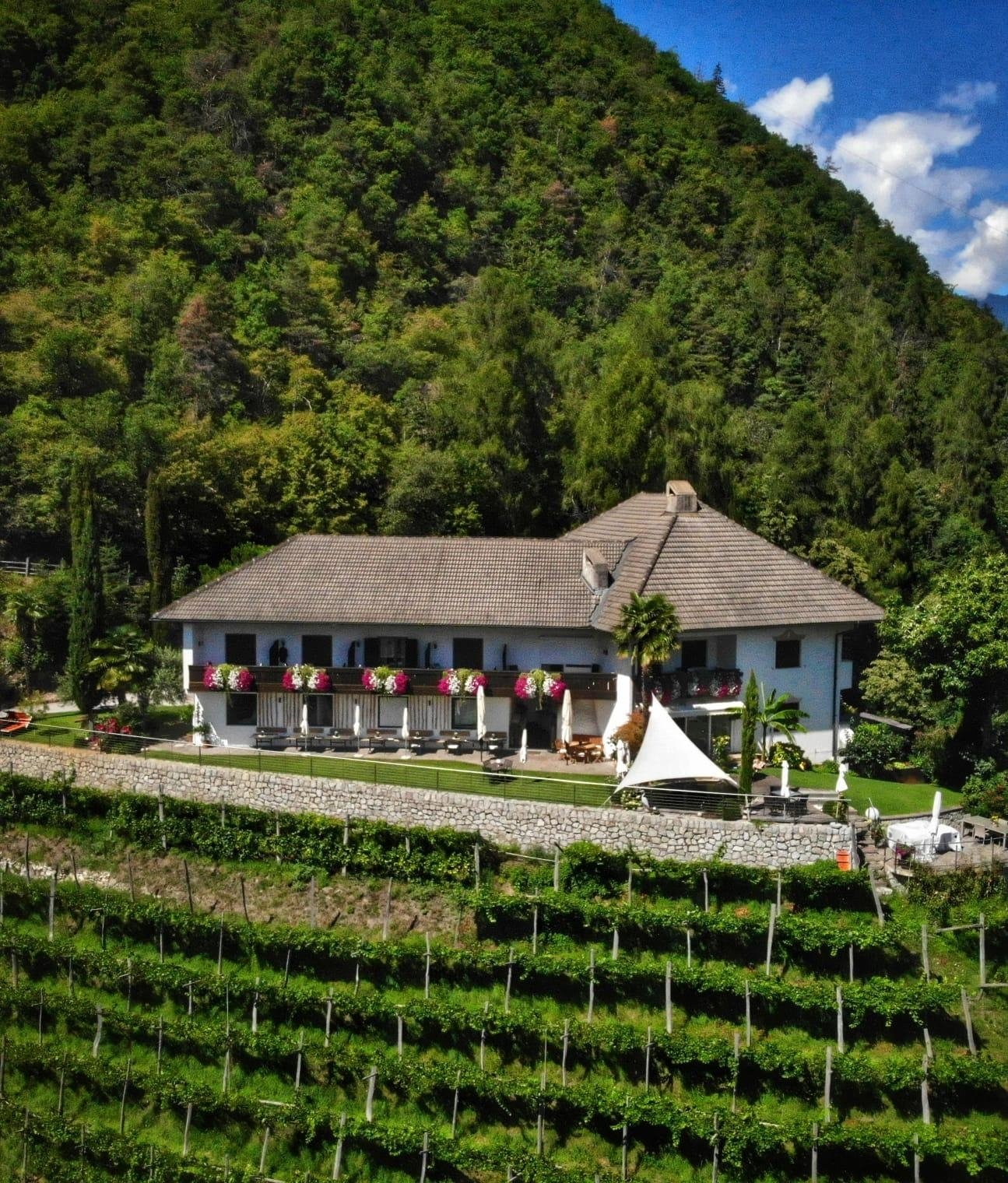 Ein unvergesslichem Panoramablick über Lana und das Etschtal, in traumhafter Hanglage mitten im Grün der Palmen und Weinberge.